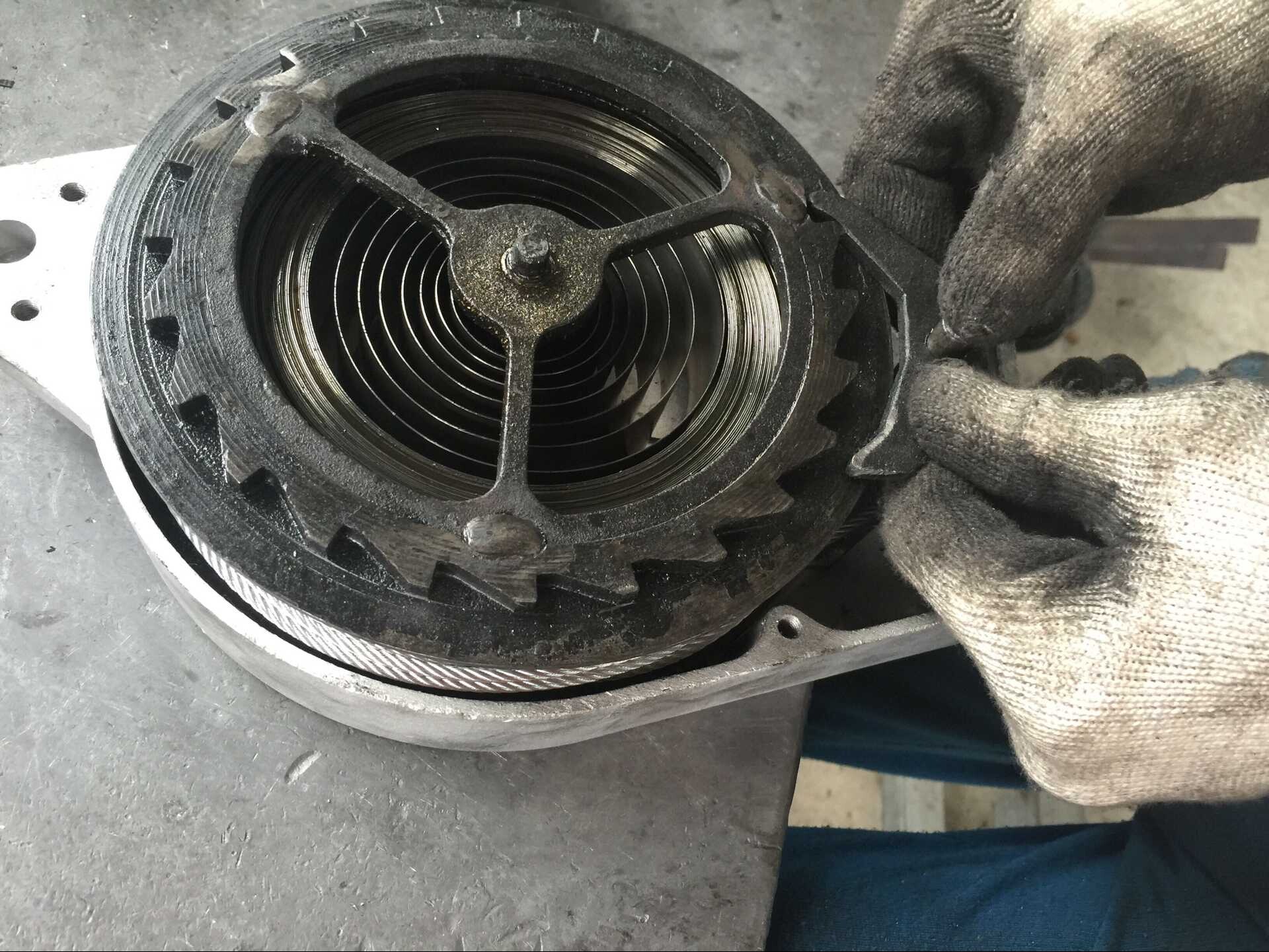 查看詳情圖片展示的是將卷鋼板放進(jìn)防墜器內(nèi)部齒輪。這種卷鋼板所起到的作用相當(dāng)于我們的汽車剎車片。不同類型的防墜器內(nèi)部卷鋼板的米數(shù)存在不同差別,比如圖片展示的這種30米防墜器內(nèi)部所放置的卷鋼板長度是不好控制的,只能依靠安裝在防墜器齒輪內(nèi)部以后,由卡尺來測量,單層卷鋼板厚度為1毫米。一般情況下,5米防墜器卷鋼板厚